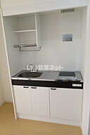 一口コンロが付いている物件です。照明付きのお部屋は、高いニーズがあり注目されています。