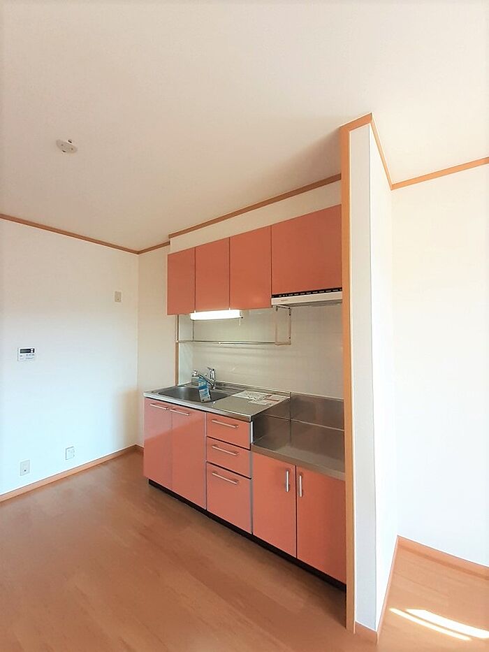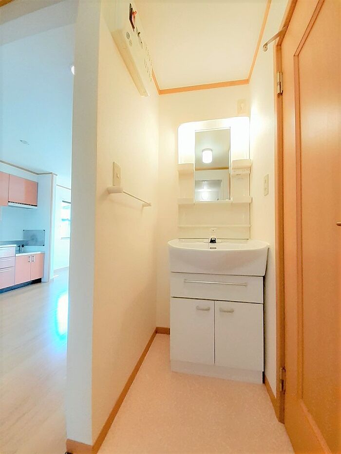 忙しい朝でも鏡を見ながらサッと身支度を整えられる独立洗面台があります。こちらの物件はアパートです。