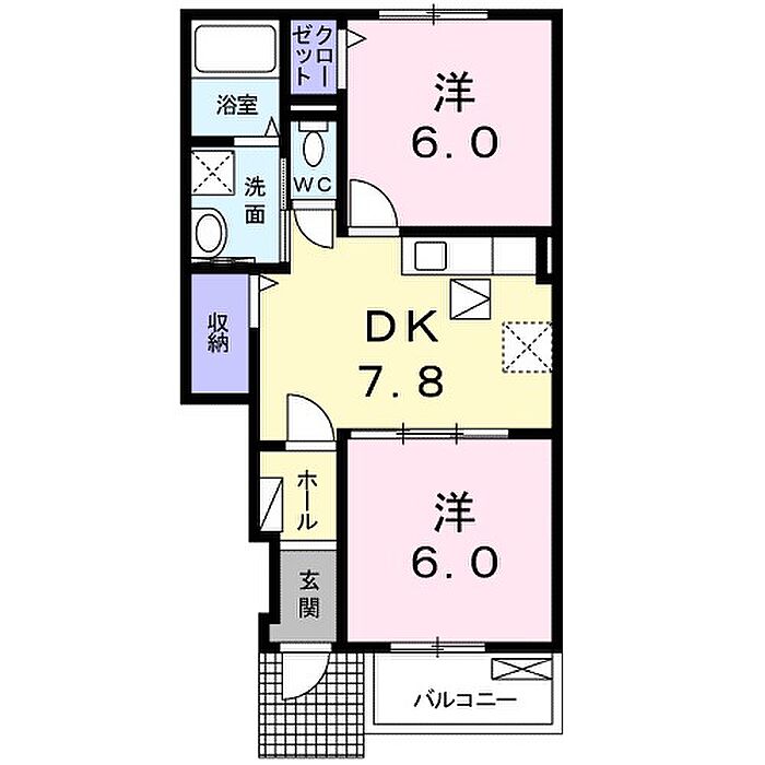 プロムナード ソレイユB 102 2DK/1階