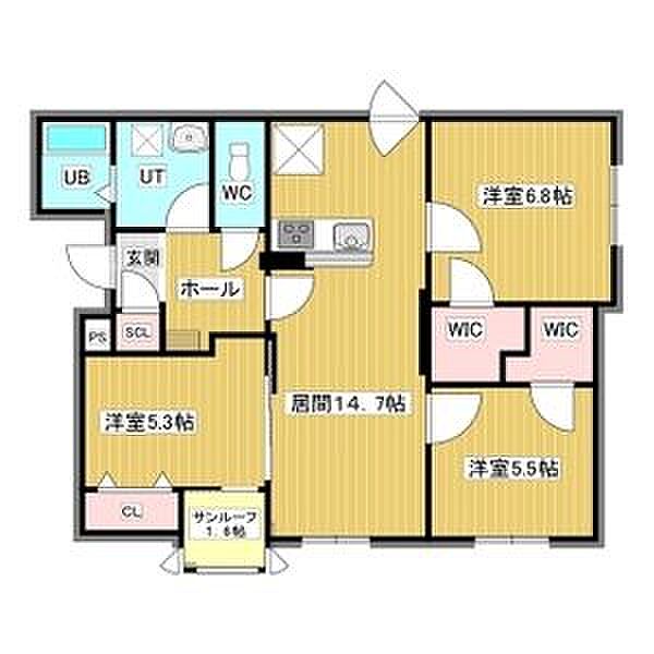 L14.7 × 洋室5.3 × 洋室5.5 × 洋室6.8)