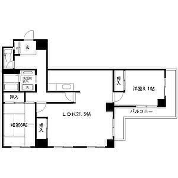 LDK:21.5畳 洋:8.1畳 和:6畳)