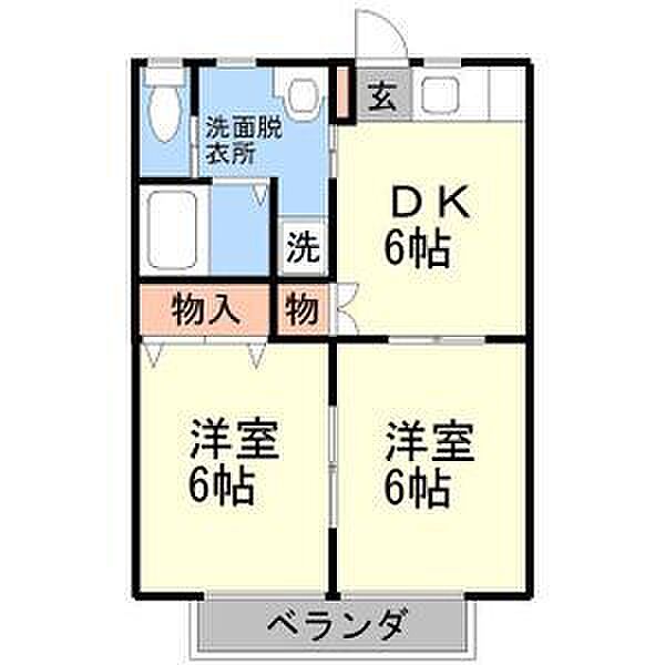 ブルージュエル B205 2DK/2階