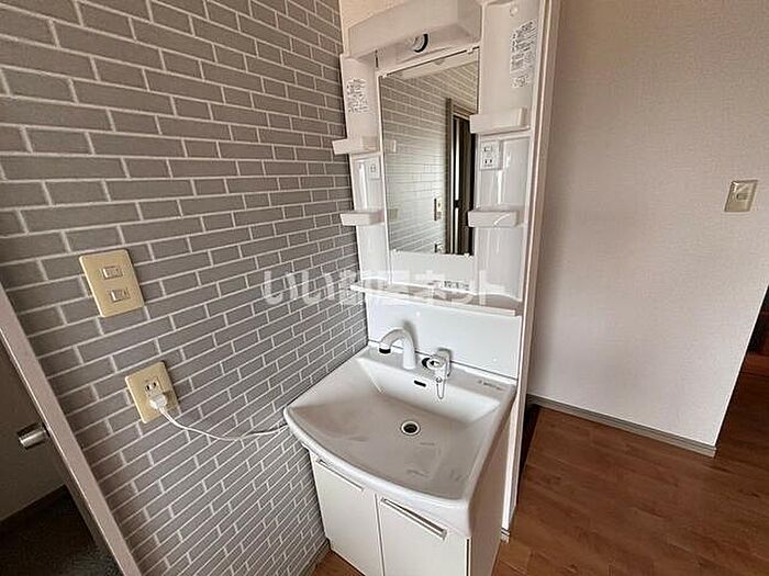 化粧品やスタイリング剤などをまとめて出して、サッと身支度を整えられる独立洗面台が付いております。