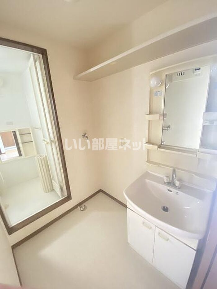 身支度に必要となる様々なアイテムを収納可能なスペースがある独立洗面台が付いています。