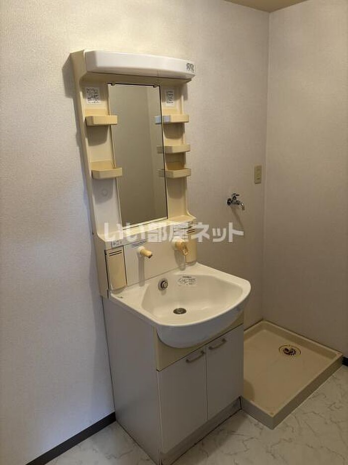 独立洗面台を備えているので、歯ブラシやドライヤーなどもまとめてスッキリ収納できます。