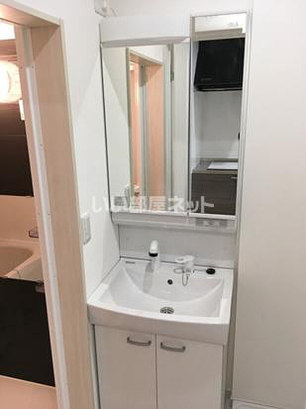 忙しい朝でも鏡を見ながらサッと身支度を整えることができる洗面化粧台があります。