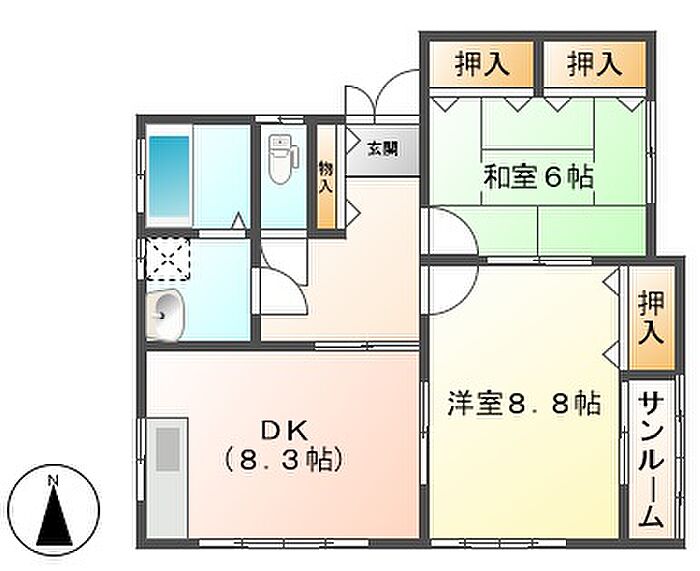 ハイム・オレンジII 102 2DK/1階