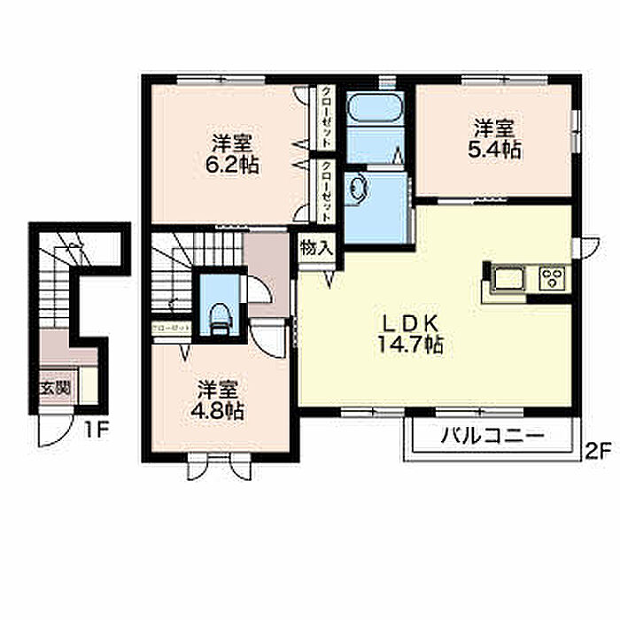 リビングダイニングキッチン 14.7帖)