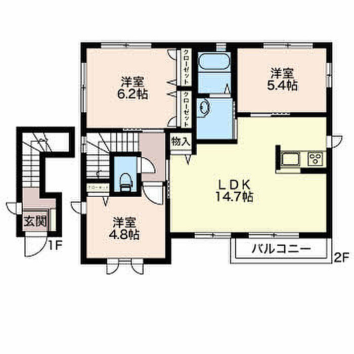 リビングダイニングキッチン 14.7帖)
