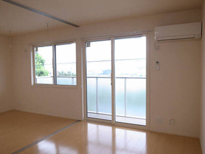 モニターから顔が見えるTVインターホン付きです。エアコン付き物件なので、湿度を下げることができます。