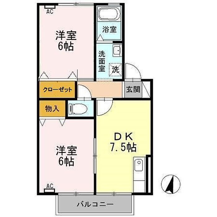 アストロハウス C 202 2DK/2階