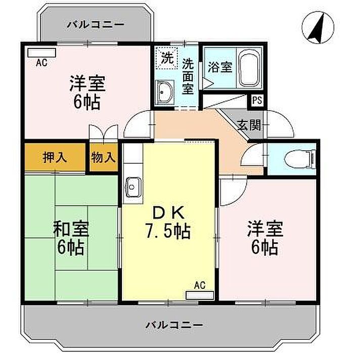 グレースリヴラン 202 3DK/2階