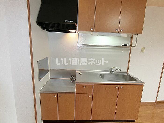 壁付けのキッチンなのでお部屋をゆったりお使いいただけます。ご内覧可能なお部屋です。