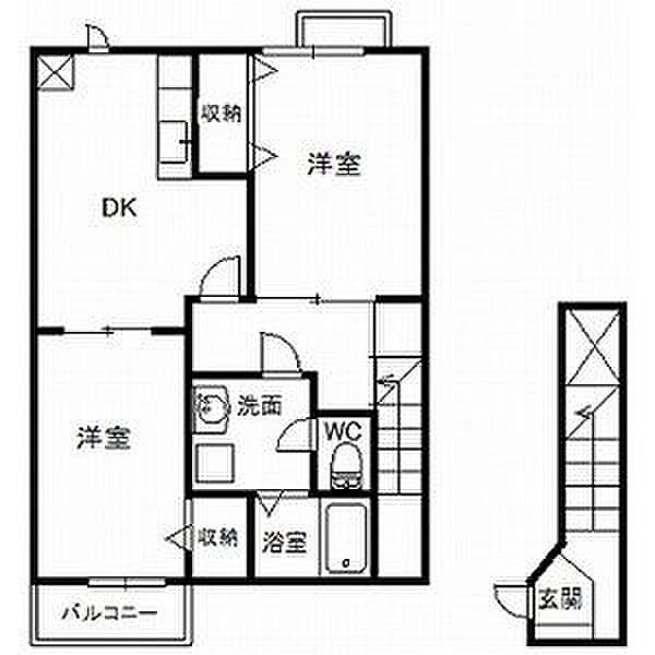 ガーデンヒルズ A-203 2DK/2階