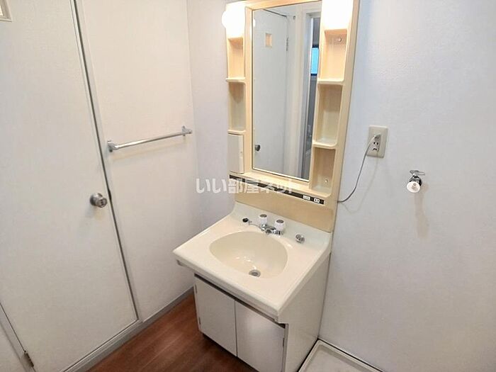 身支度に必要となる様々なアイテムを収納可能なスペースがある独立洗面台が付いています。