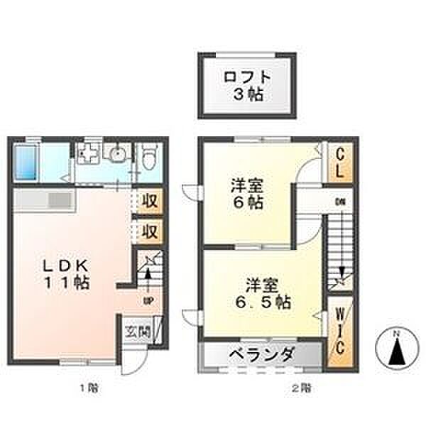 1階と2階を専有できるメゾネットタイプのお部屋です。ロフト。エアコン2台付。