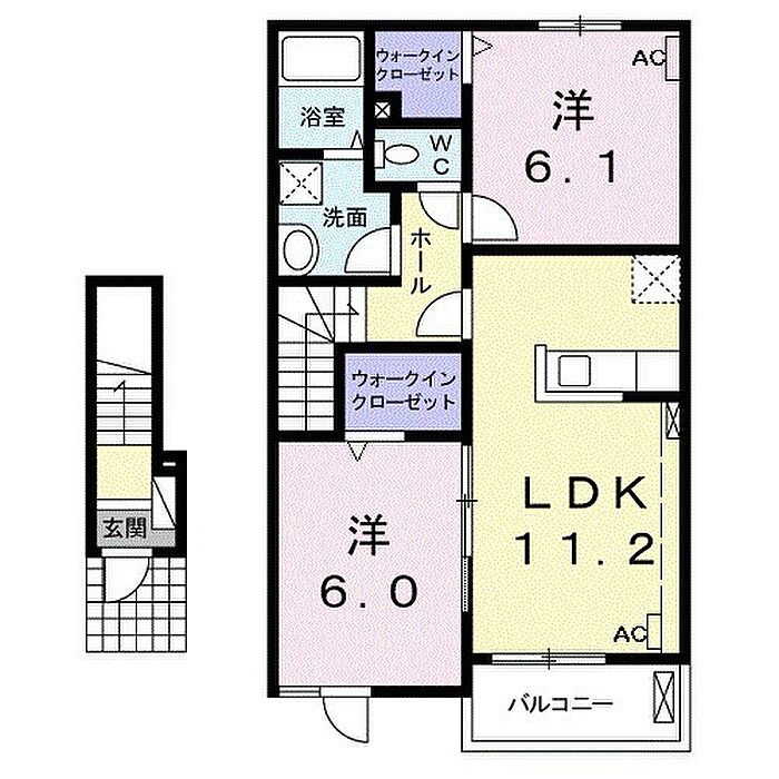 2階2LDKのお部屋です。ペットと一緒に暮らせます。エアコン2台付。トランクルームがあります。