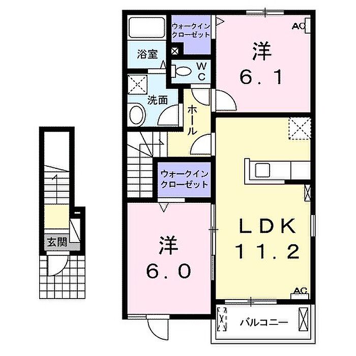 エアコン2台付き。各居室にウォークインクローゼットがあります。
