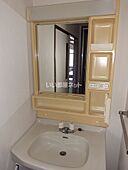 化粧品や洗面道具といった小物をまとめて収納できる独立洗面台を採用しています。駐輪場付き物件です。