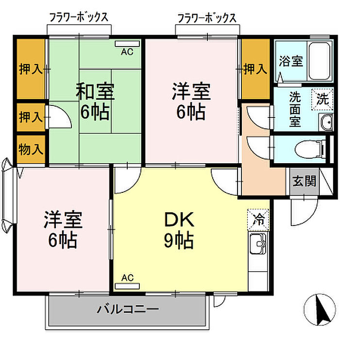 メゾン・ド・ボヌール D棟 D202 3DK/2階