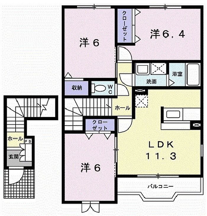メゾンド カルムE 202 3LDK/2階