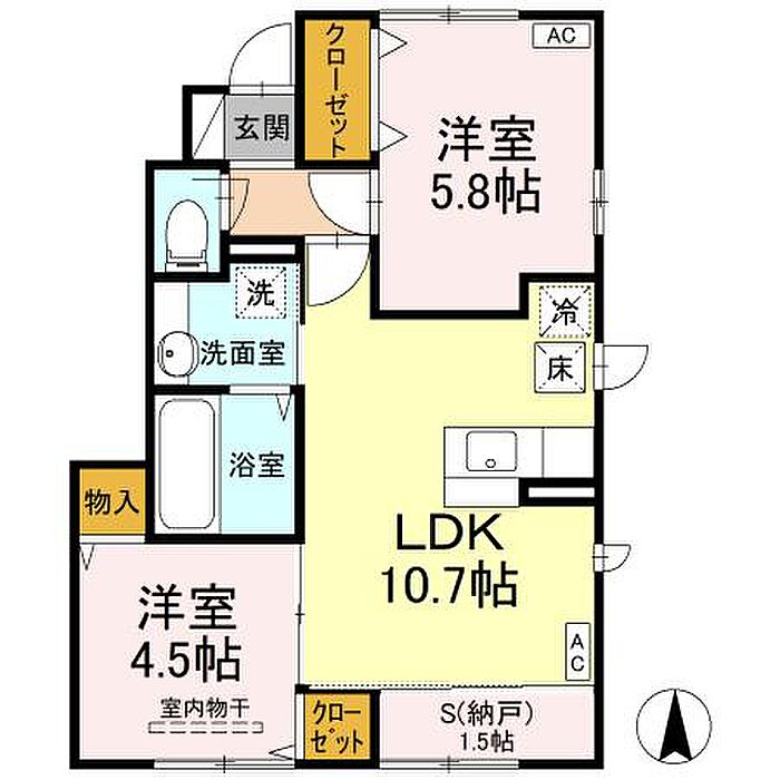 収納はクロゼット・シューズボックスなど豊富なので、衣類や履き物の整理がしやすく便利です。