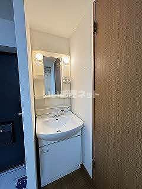 化粧品や洗面道具といった小物をまとめてスッキリ収納できる洗面化粧台が付いております。