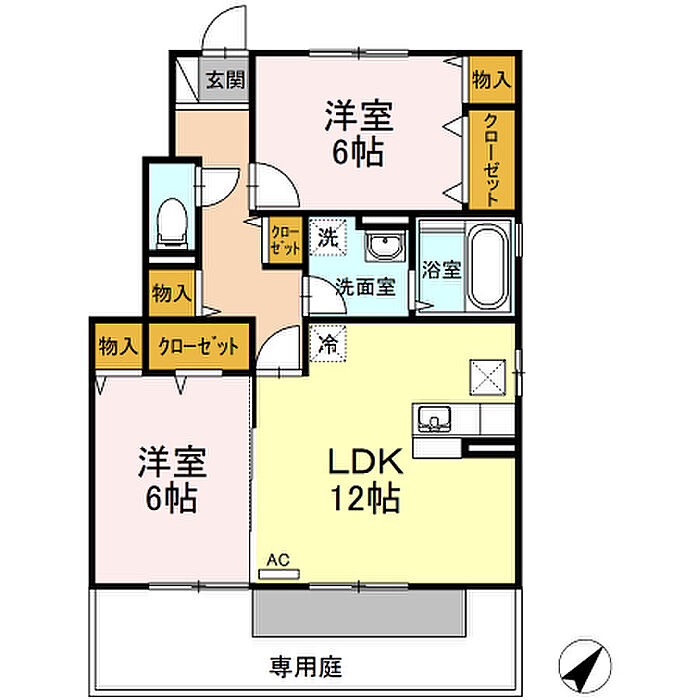 アドラブールA・B・C棟 C棟 101 2LDK/1階