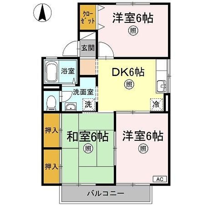 フォンティーヌ D棟 D201 3DK/2階
