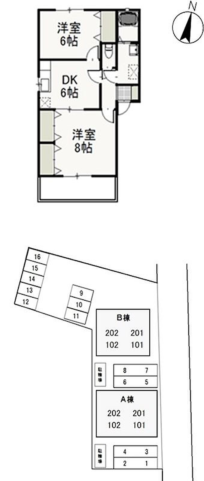 グリシーヌB 102 2DK/1階
