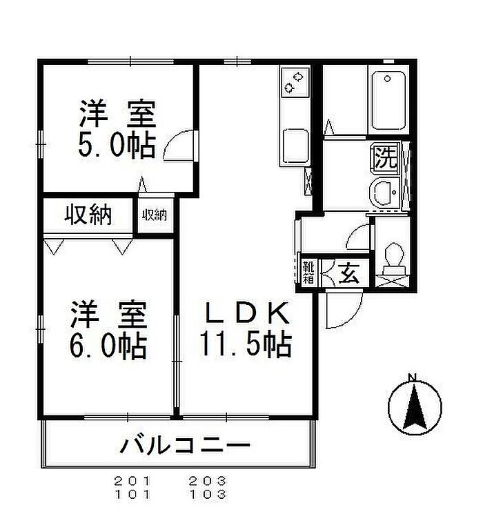 パインツリーD 203 2LDK/2階