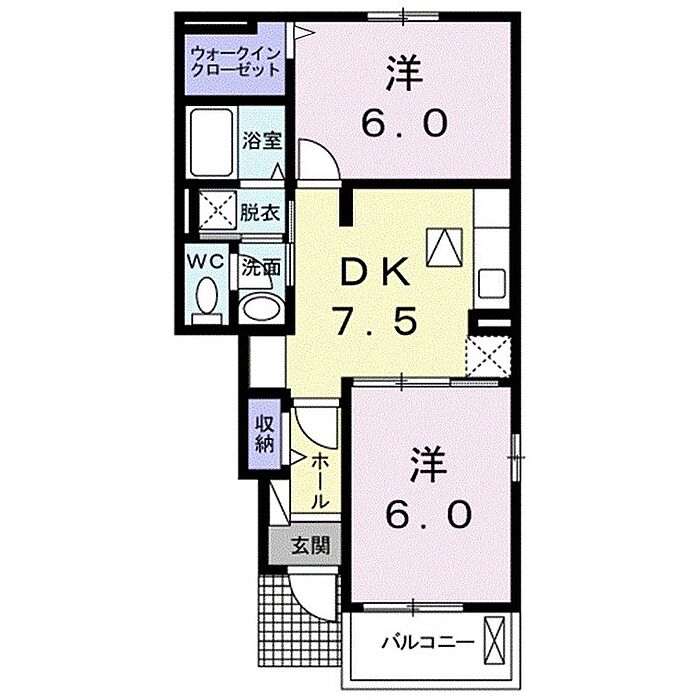 ル・ココンB 104 2DK/1階
