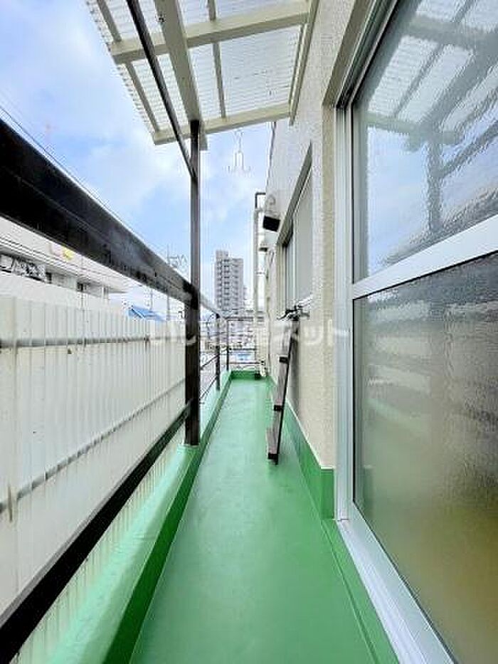 バルコニーの一部に目隠しの板設置予定です。事務所利用不可です。