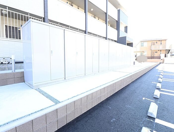 キッチンには、3口ガスコンロつき インターネット無料です(D.U-NET。回線工事後使用可)1世帯1室トランクルーム付き