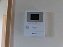 カメラで訪問者を確認できるTVインターホンが設置されています。フローリング張りのお部屋です。