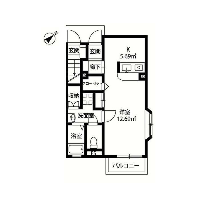 アムール 新町 102 1K/1階