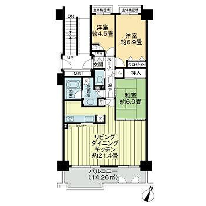 リビングダイニングキッチン 21.4帖)