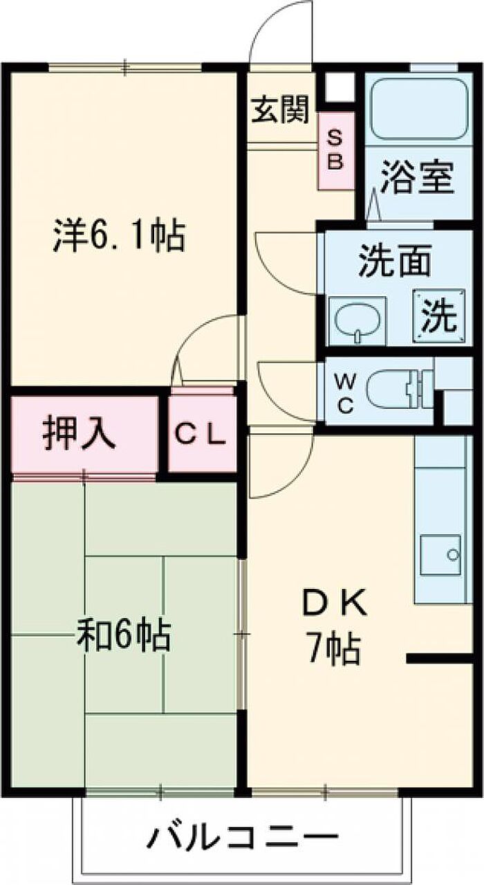 フォブールタウン成合B 202 2DK/2階