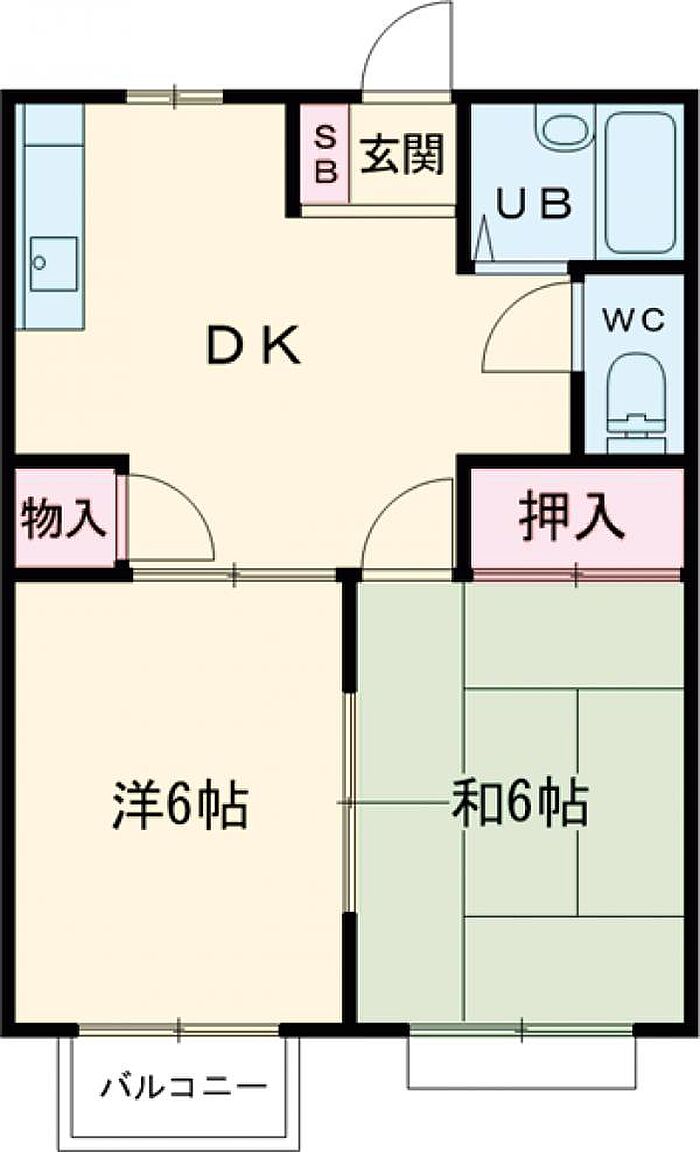 フォブール古高松B 103 2DK/1階