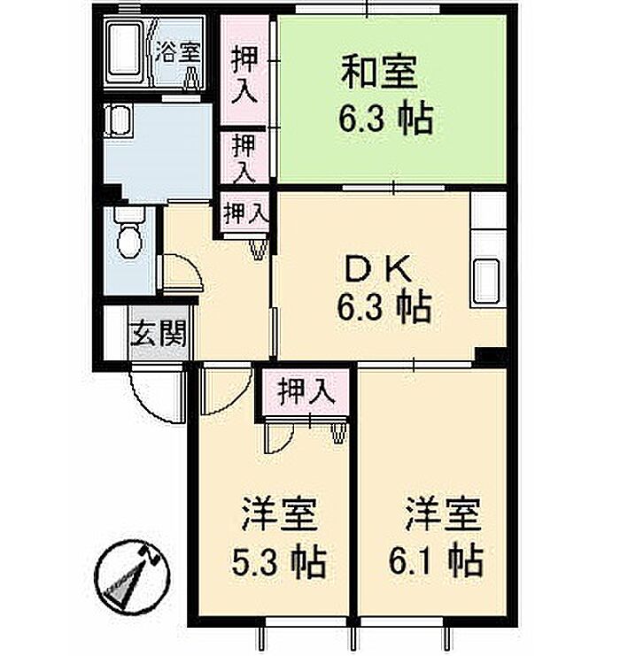 ジュネスタウン C棟 202 3DK/2階