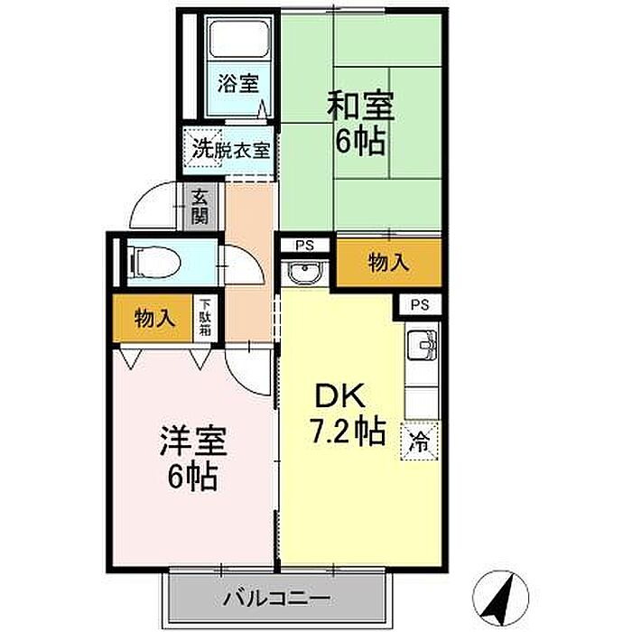 リッジウッド90 C棟 102 2DK/1階