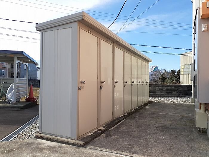 消雪設備付きの物件です。冬でも冷たさを感じにくい浴室乾燥機付き。共用部に駐輪場が設置されております。