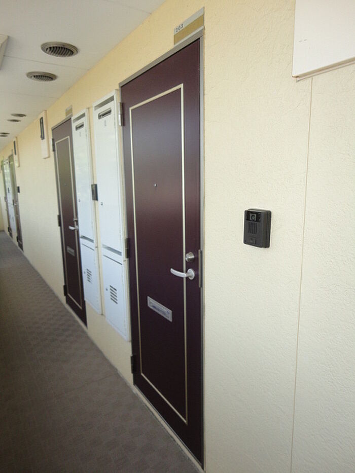 来訪者の顔が確認できる、安心のTVインターホン付きです。システムキッチンのついたアパートです。
