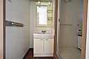 独立洗面台なので床が水で濡れたり鏡が曇ったりしにくく、清潔な状態を保ちやすくなっております。