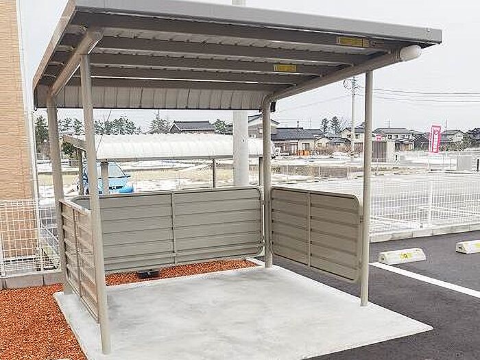 敷地内ゴミ置場設置済み物件。サンルーム付きのお部屋。全居室に収納設備を導入しております。