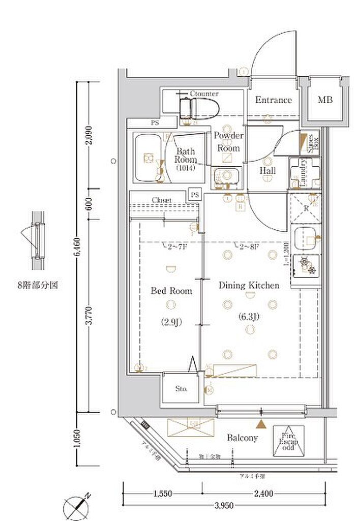 (ダイニングキッチン 6.3帖(8階)