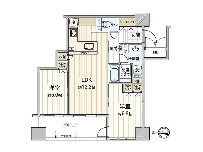 ブランズタワー大阪備後町 2LDK/22階