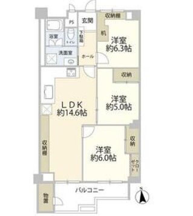 京王北野マンション四 110 3LDK/1階