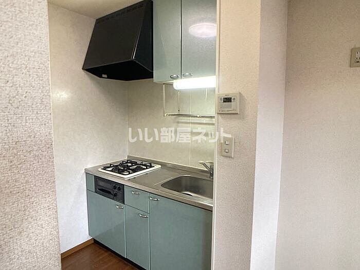 全室角部屋!!グリル付の2口ガスコンロが設置されています☆エアコン・TVインターホン付きです。