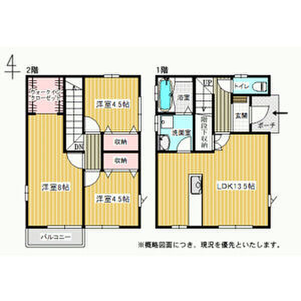 (洋8帖、洋4.5帖、洋4.5帖、LDK13.5帖)